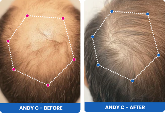 100% of users experienced an increase in hair count, with an average hair growth of 43.2% in terminal hairs after just 16 weeks...
